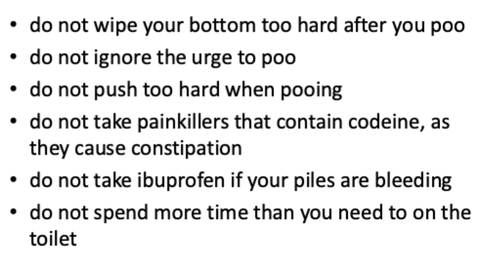 What should be avoided in managing acutely presenting haemorrhoids ?