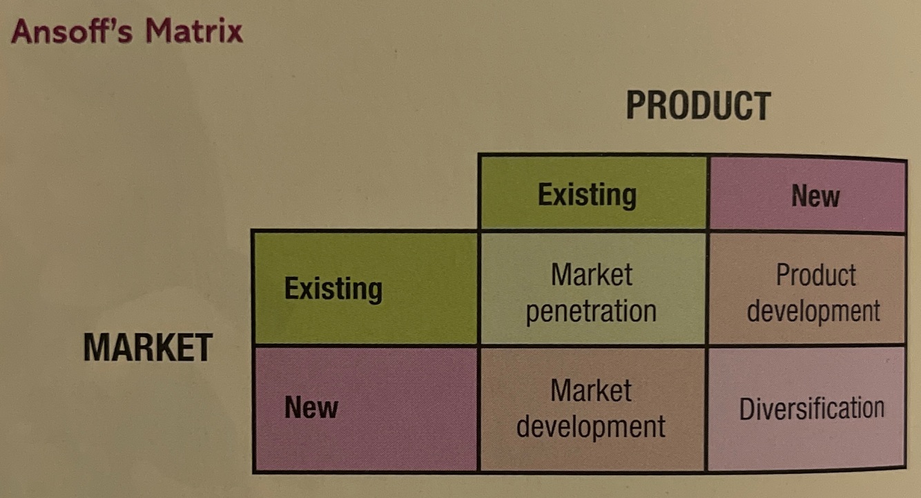 Ansoff’s matrix is a strategic tool to help businesses achieve growth by developing possible strategies.
