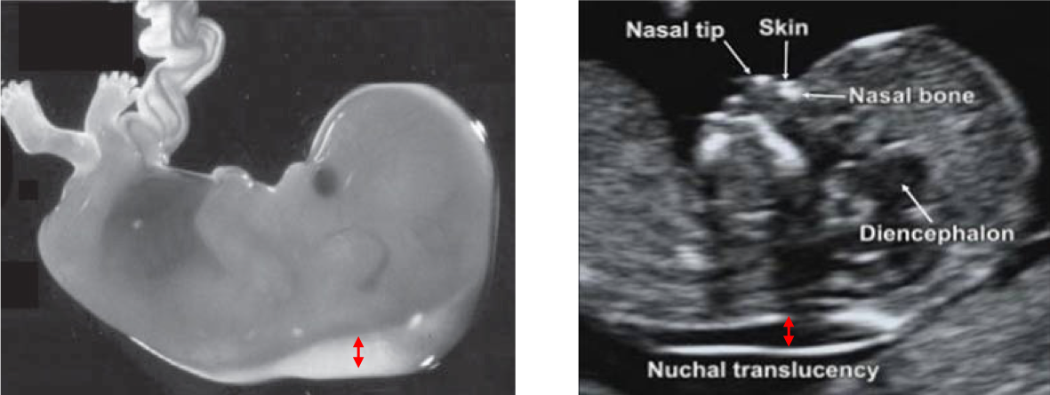 Nuchal translucency (NT) is the sonographic appearance of a collection of fluid under the skin behind the fetal neck in the first-trimester of pregnancy