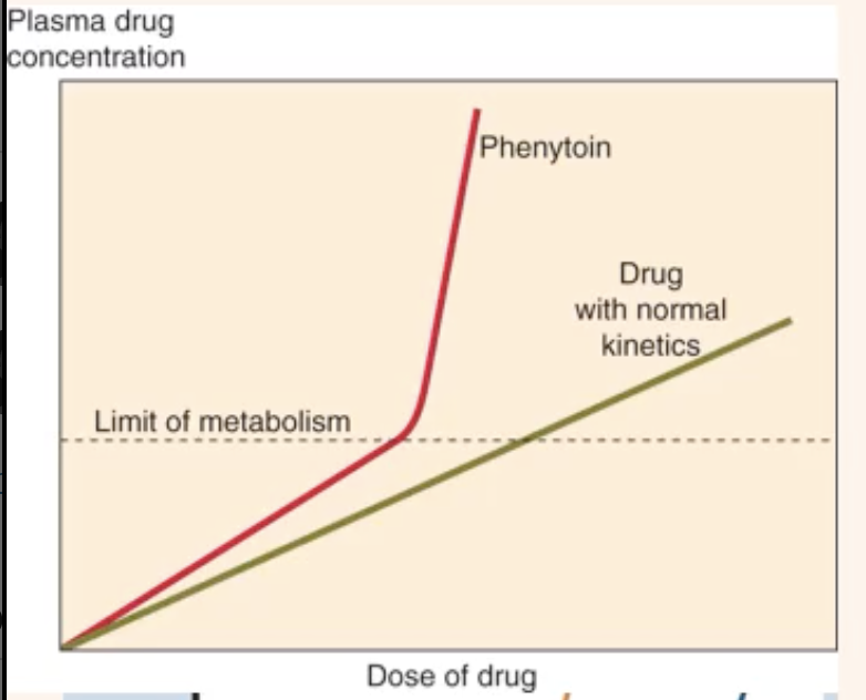 - BUT it induces cytochrome P450, meaning after a while it is metabolised quicker so the half lives are shorter