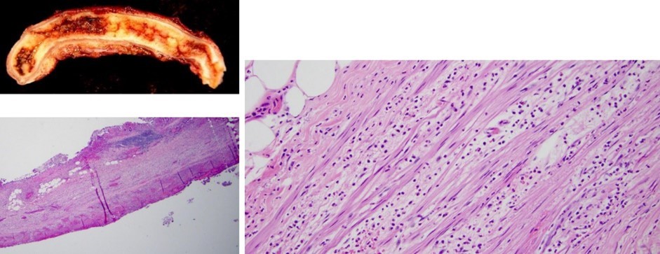 o Akut flegmonös – transmural inflammation utan vävnadssönderfall/nekros