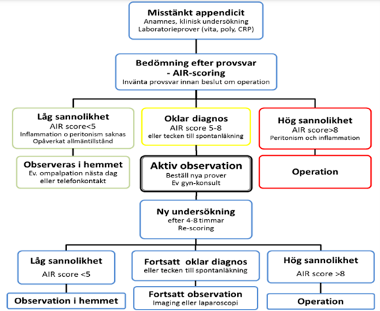 o Om kliniskt hög sannolikhet – operera (titta in)