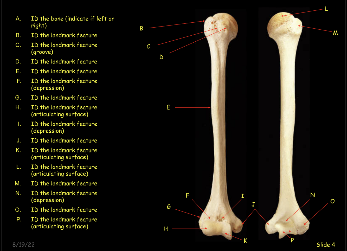 ID the specific bone at D.