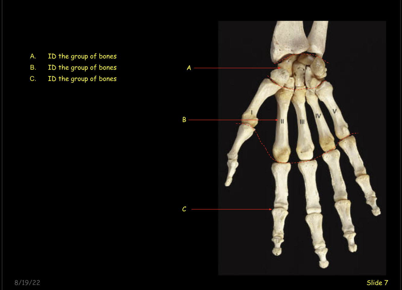 ID the group of bones at C.