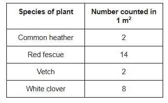 The table below shows the number of plants he found in a sample area of 1 m2