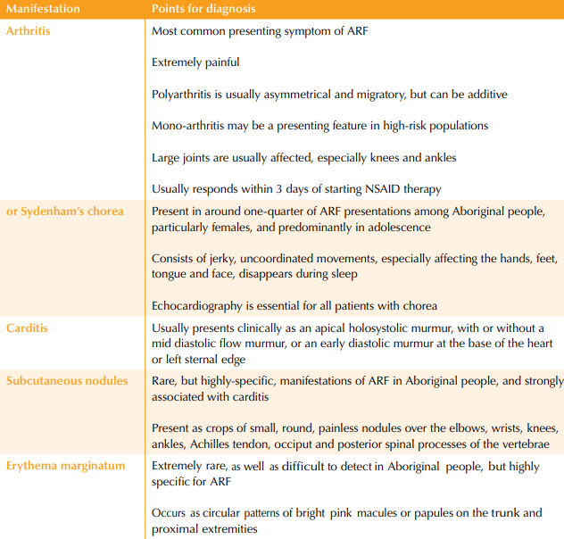 What are the major and minor manigestations of ARF?