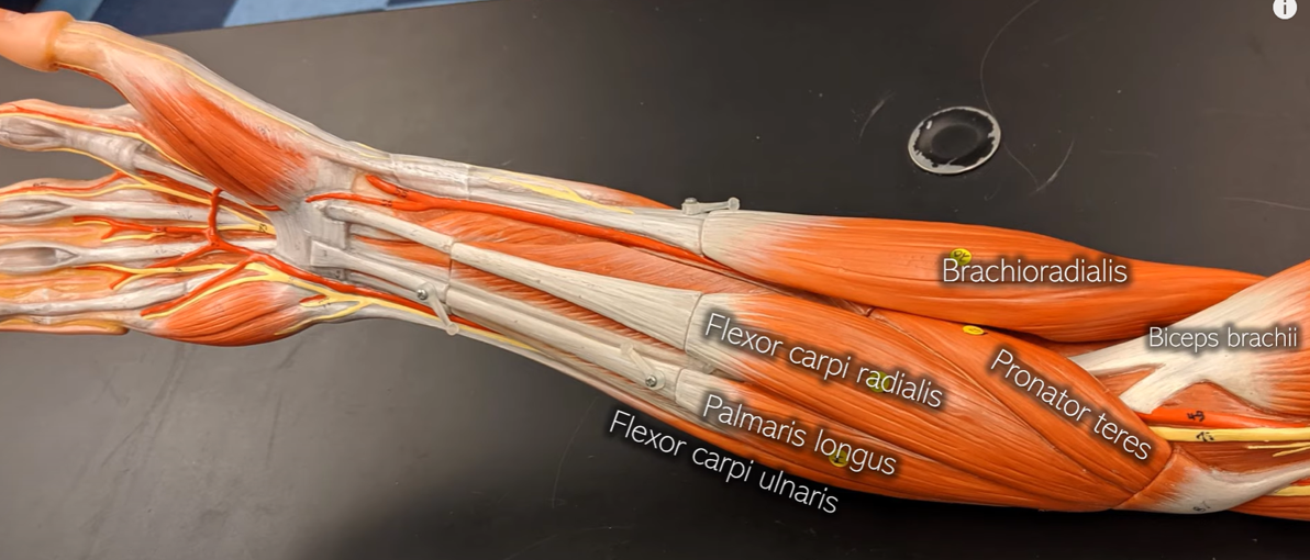 the anterior compartment of the forearm contains muscles involved in flexion of the hand and pronation of the forearm