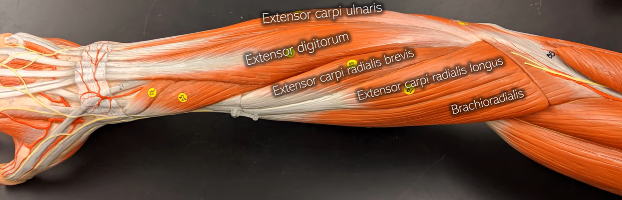 the posterior compartment of the forearm contains muscles involved in extension of the hand and supination of the forearm