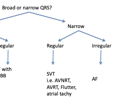 3) Is the QRS width normal (narrow) or broad?