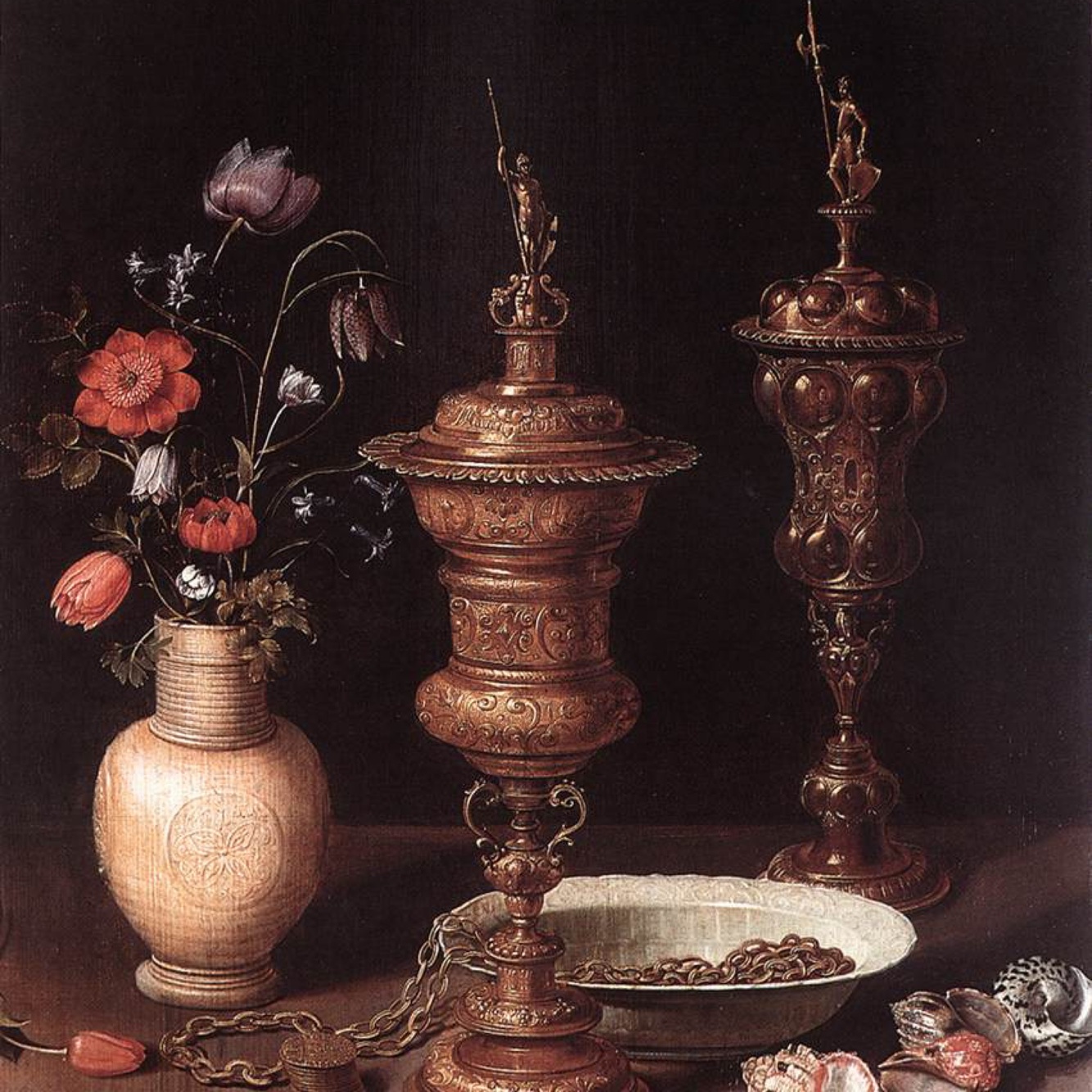 1612, Still Life with a Vase of Flowers, Goblets and Shells - Clara Peeters
