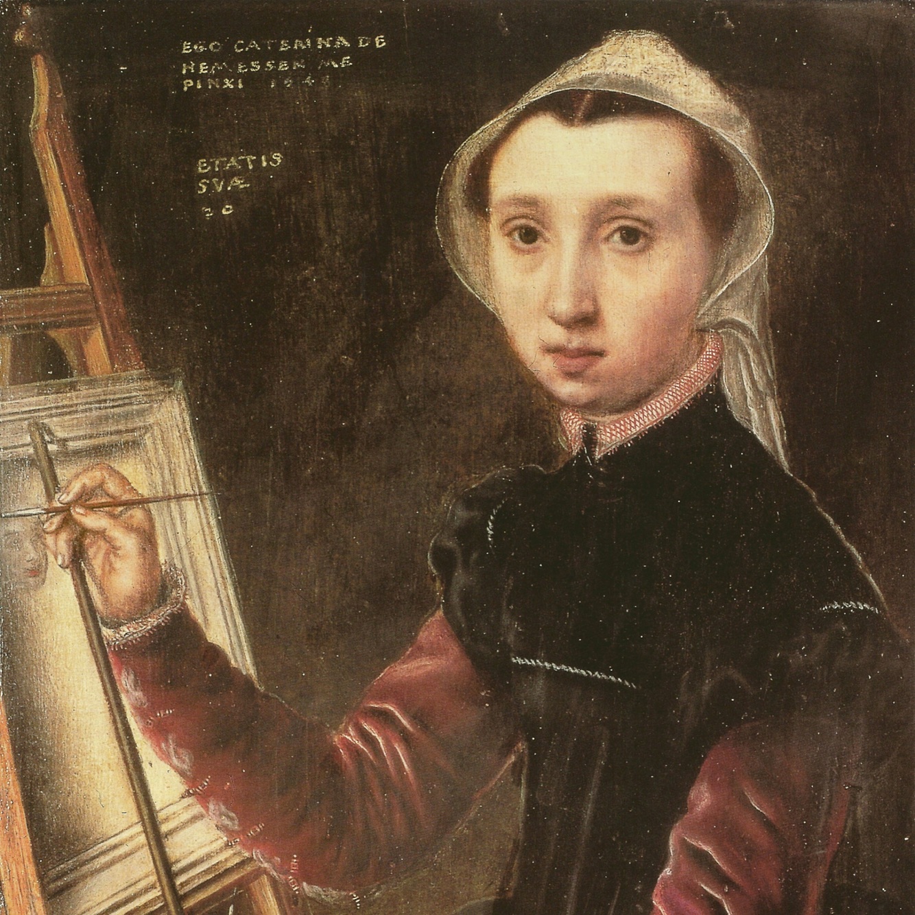 Self-portrait (1548) - Flemish Renaissance artist Caterina van Hemessen - first work by an artist of a self-portrait in front of an easel