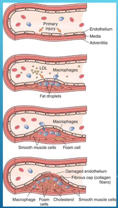 -Eventually too much cholesterol and a pool of extracellular cholesterol forms the centre of the plaque