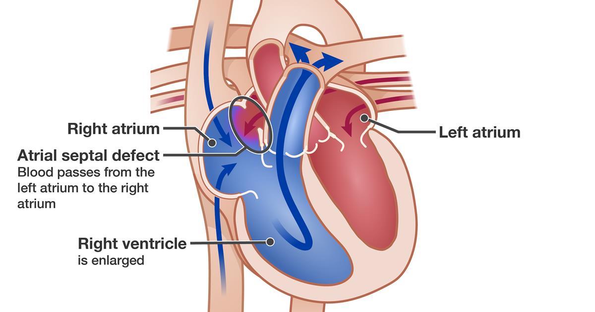 (bc increased blood flow to R heart –> overload + strain to R heart)