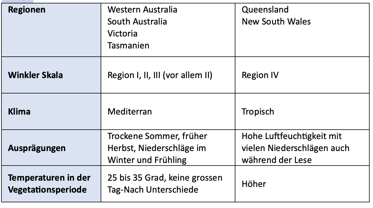 - Regions: unverwechselbare Eigenschaften wie z.B. Barossa Valley, Eden Valle