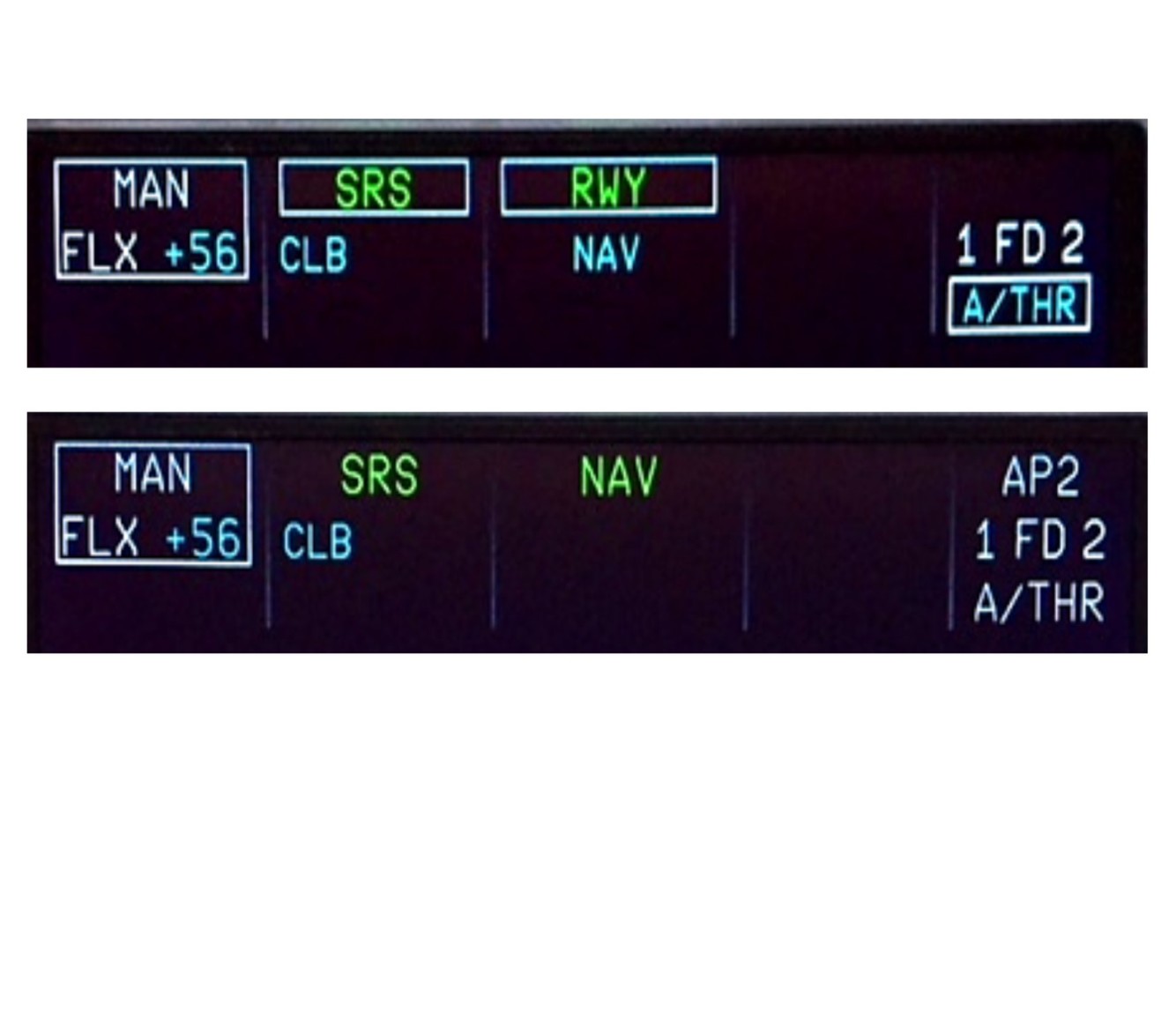 Means: Thrust is fixed at the current setting. (Could result from a fault OR pressing the FCU A/THR button.)