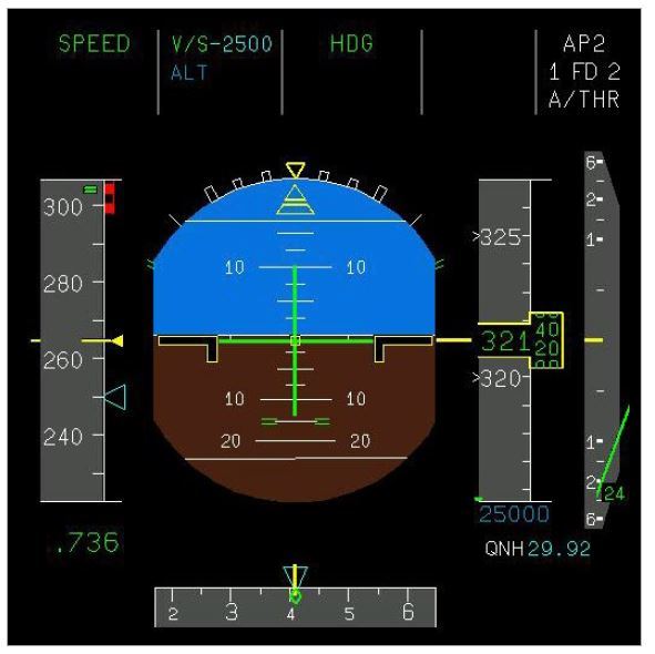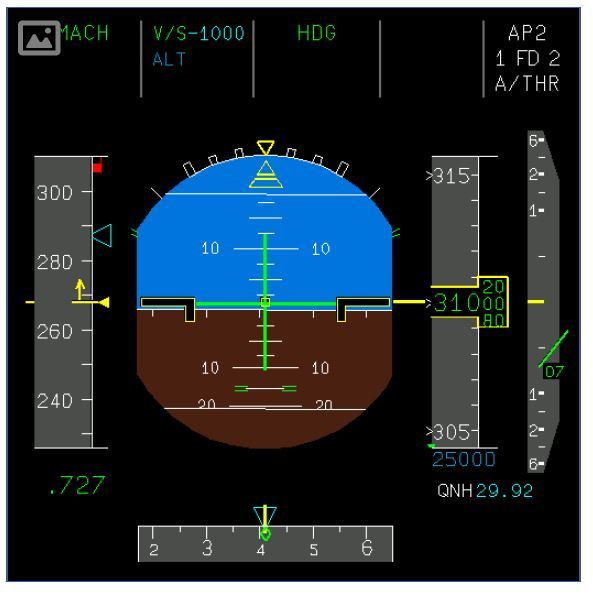Based on the PFD shown, what thrust is being commanded?
