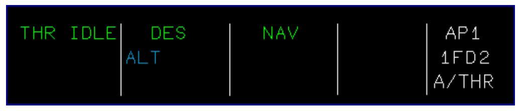NAV mode will change to HDG; DES mode will change to V/S, THR mode will change to SPEED