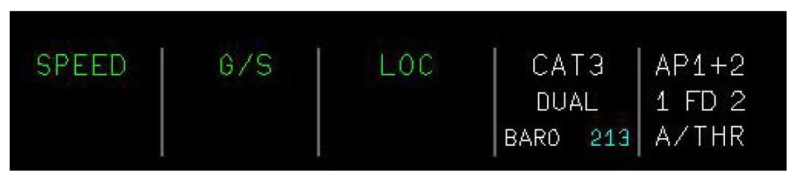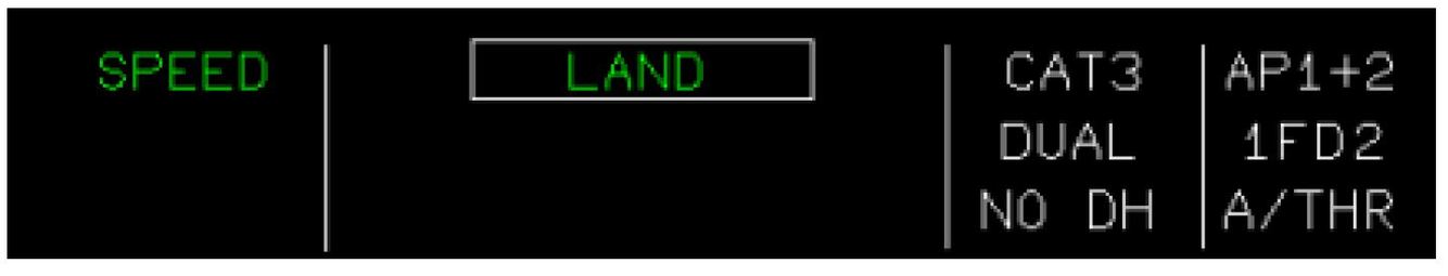 LAND indicates that the LOC and GS Modes are locked. No action on the FCU will disengage the LAND Mode FLARE and ROLLOUT Modes will successively engage