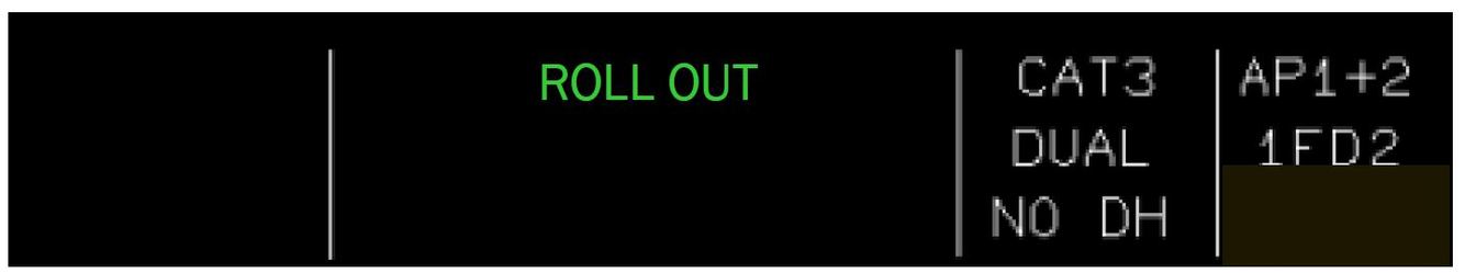 During an autoland, what does ROLL OUT indicate?