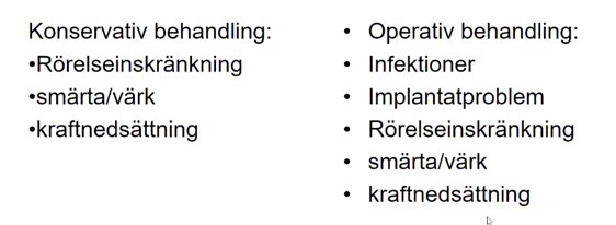 Konservativ behandling är även förstahandsbehandling av äldre patienter med sämre benkvalitet och/eller dåligt allmäntillstånd.