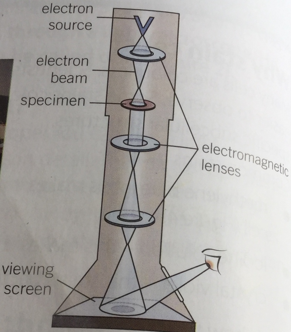 Electron microscopes use electrons instead of light to produce an image. They were developed in the 1930’s to allow scientists to see in greater detail. The greater resolution is achieved by high energy electrons as the light source