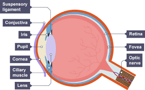 The optic nerve is a bundle of sensory neurones at back of eye. It carries impulses from the eye to the brain.