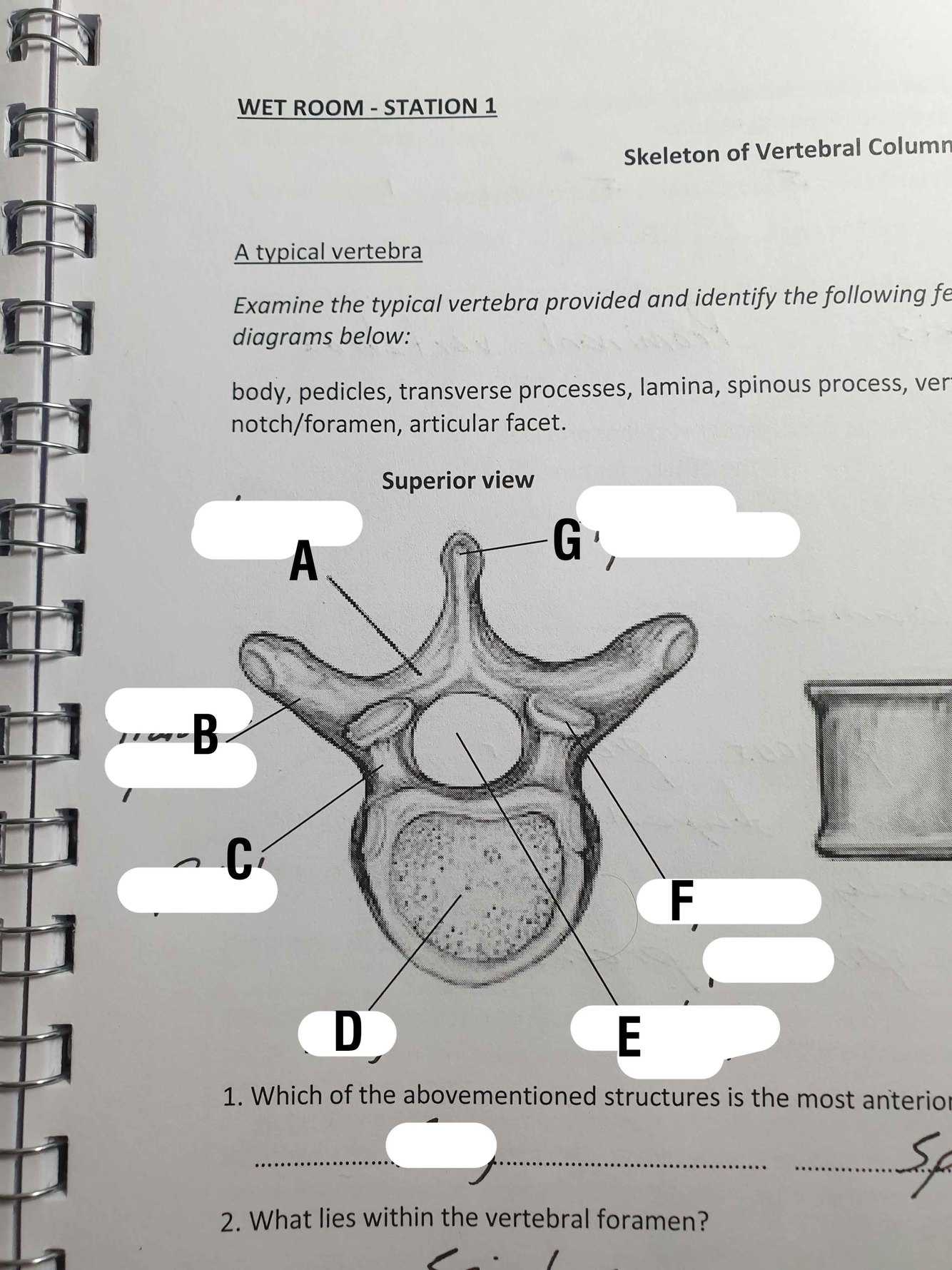 What is found inside the intervertebral foramen (vertebral canal, E)?