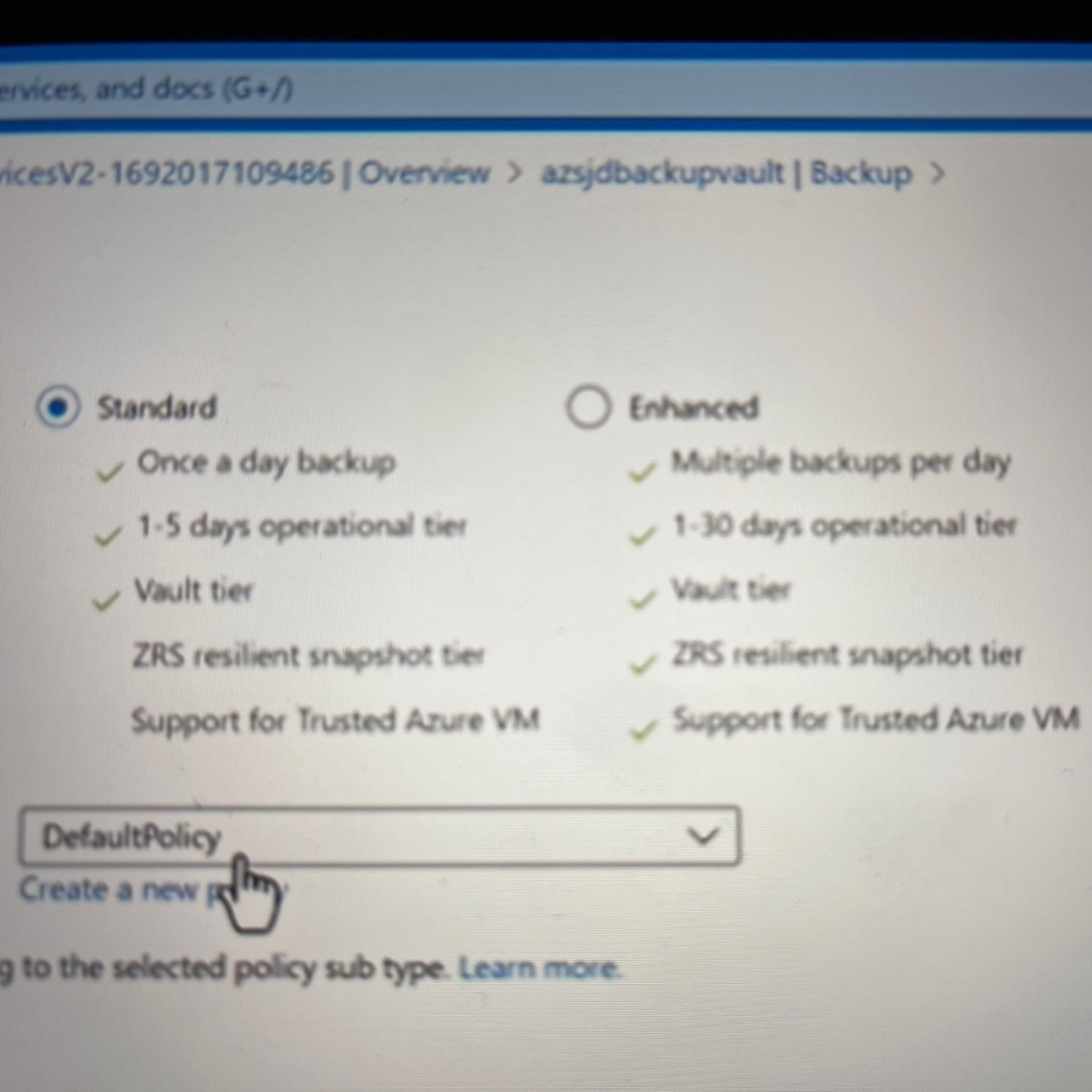 What are the differences between standard and enhanced backup policies?