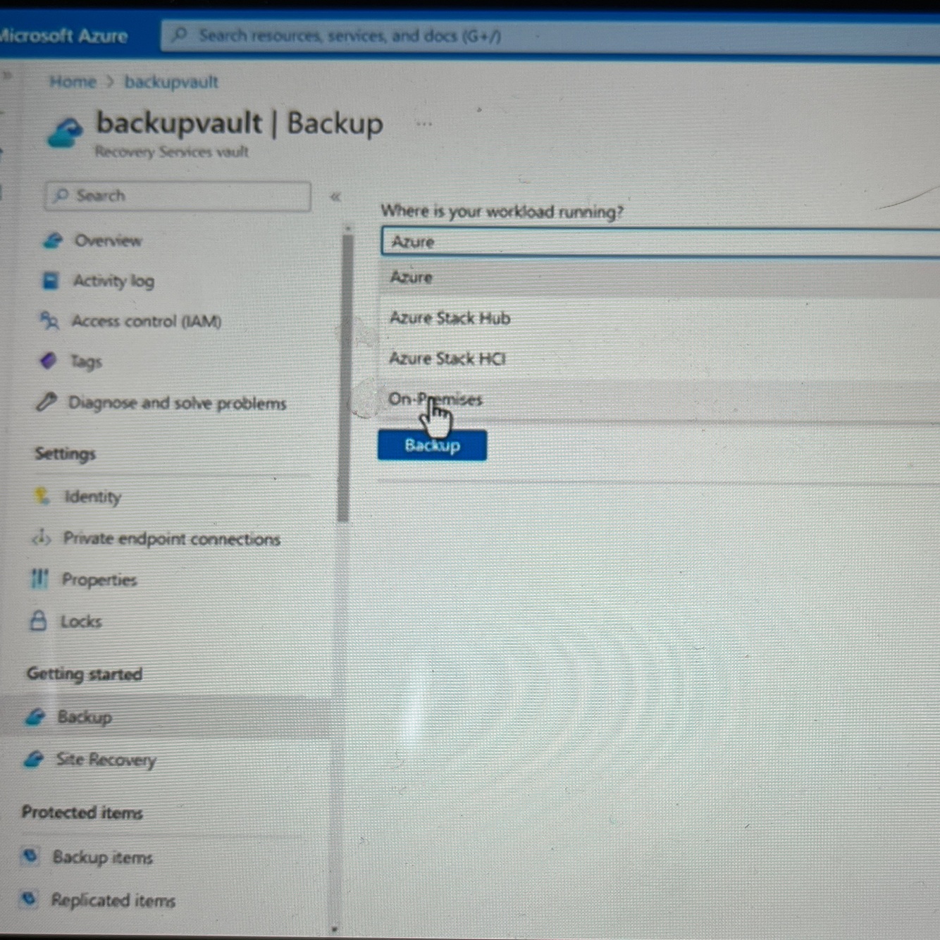 When creating the backup vault, on premises is an option for where the workload is running. You can also here define what you want to backup.