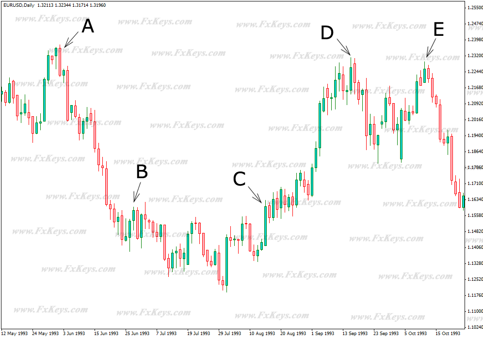 When a trading bar high is greater than previous bar high and the close is down from the previous bar close