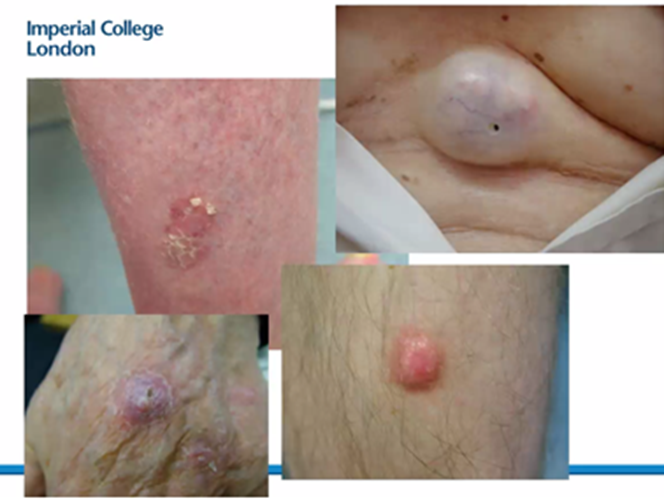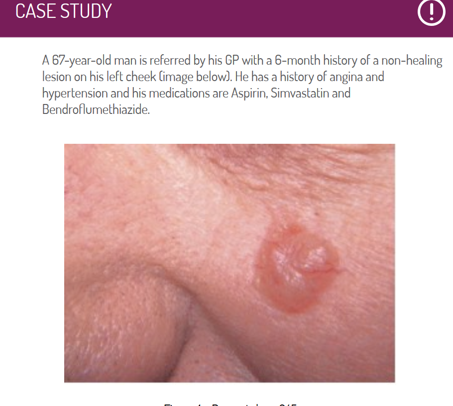 TL - Bowen’s disease - early form of skin cancer that is easily treatable. Main sign is red, scaly, patch on the skin. Easy to miss.
