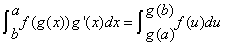 If g’ is continuous on [a,b] and if f is continuous on the range of u=g(x) then: