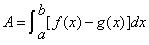 if the area is bounded by curves y=f(x) and y=g(x), and the lines x=a and x=b, where f and g are continuous and f(x) > g(x) for all x in [a,b];