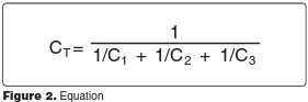 1. (Refer to Figure 1.) When different rated capacitors are connected in series in a circuit, the total capacitance is