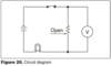C— permit the battery voltage to appear on the voltmeter. Explanation: An open in the resistor will cause an infinite resistance. No current can flow in the circuit. Since no current flows, there is no voltage drop across the switch or the lamp, and the entire battery voltage is read on the voltmeter.