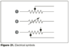 A— 2. Explanation: Symbol 2 is a variable resistor (rheostat). This is not the most widely used symbol as it can be used only for a rheostat (a variable resistor with only two connections) and not for a potentiometer. Symbol 1 is a tapped resistor. Symbol 3 is a tapped resistor—tapped at two places.