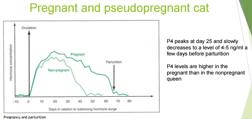 ❖ Baseline levels of 1-2 ng/ml are not essential for onset of delivery like in the bitch.