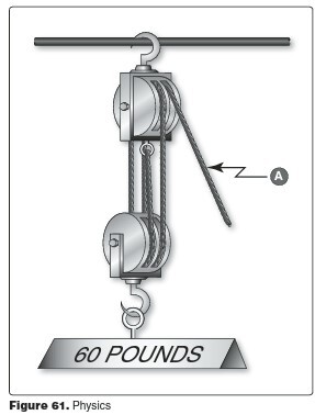 1. (Refer to Figure 61.) The amount of force applied to rope A to lift the weight is
