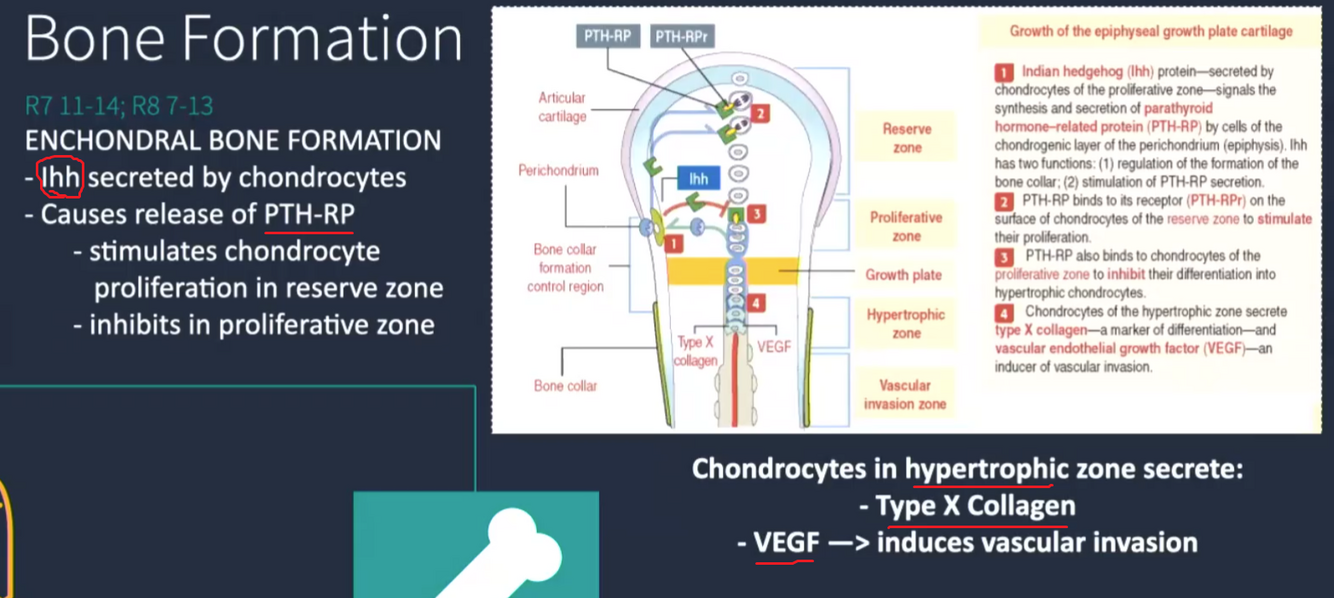 enchondral formation, bone replaces a cartilage model. Long bones, physis, fracture callus