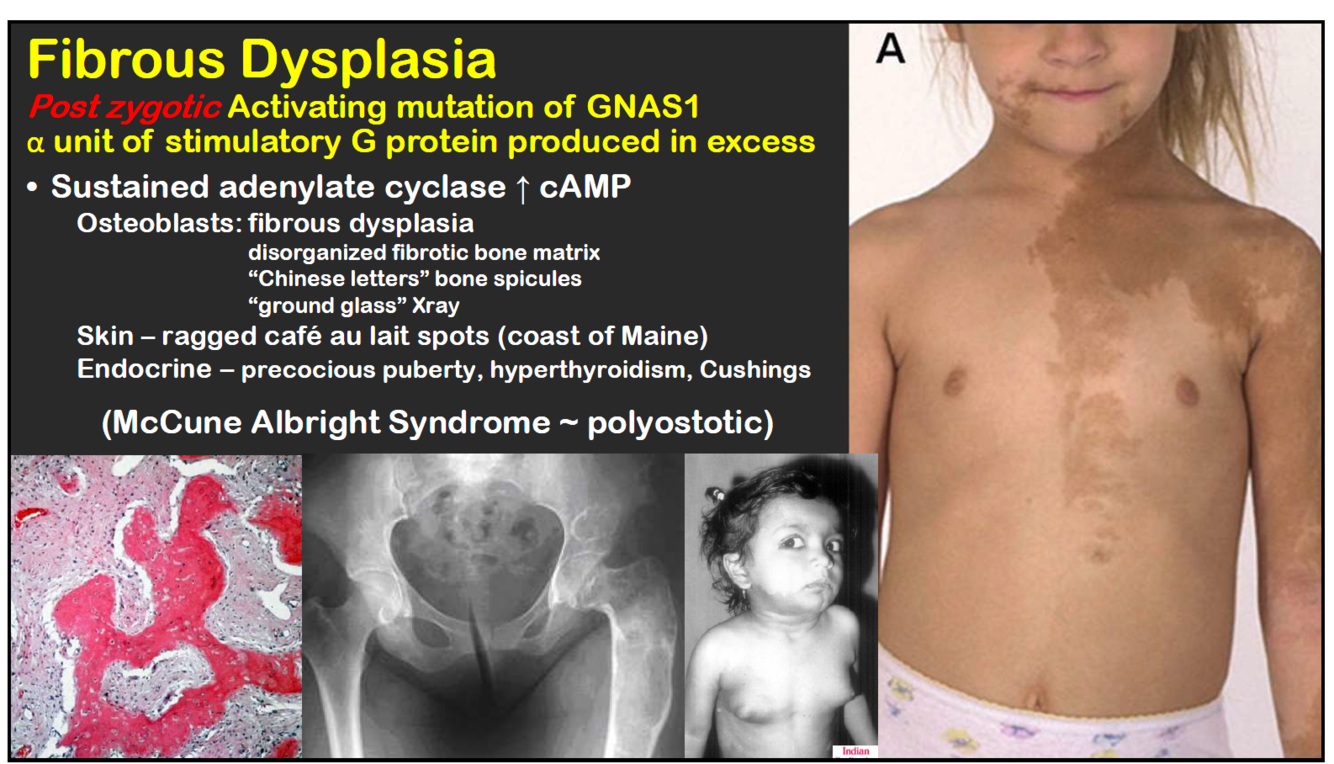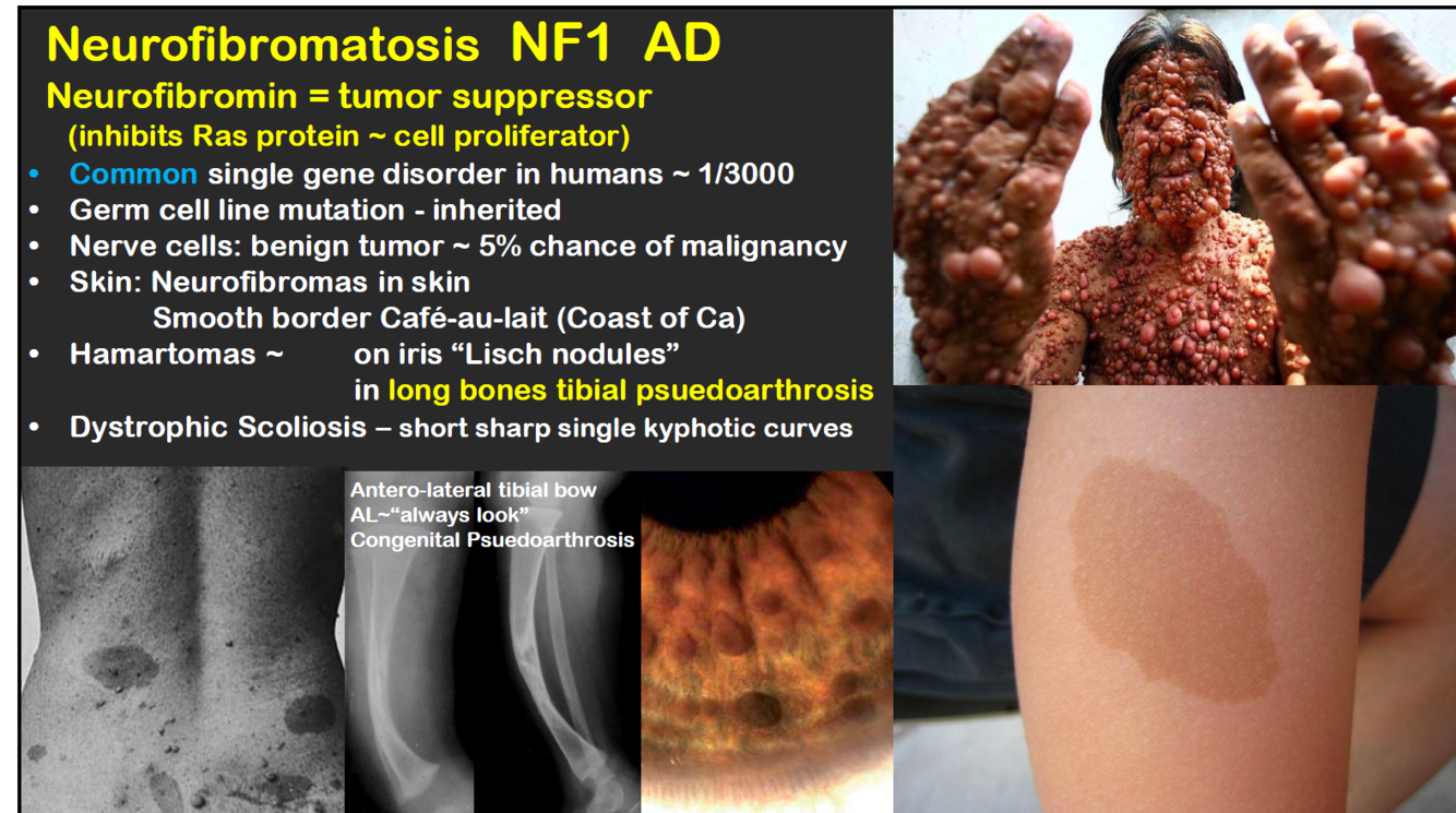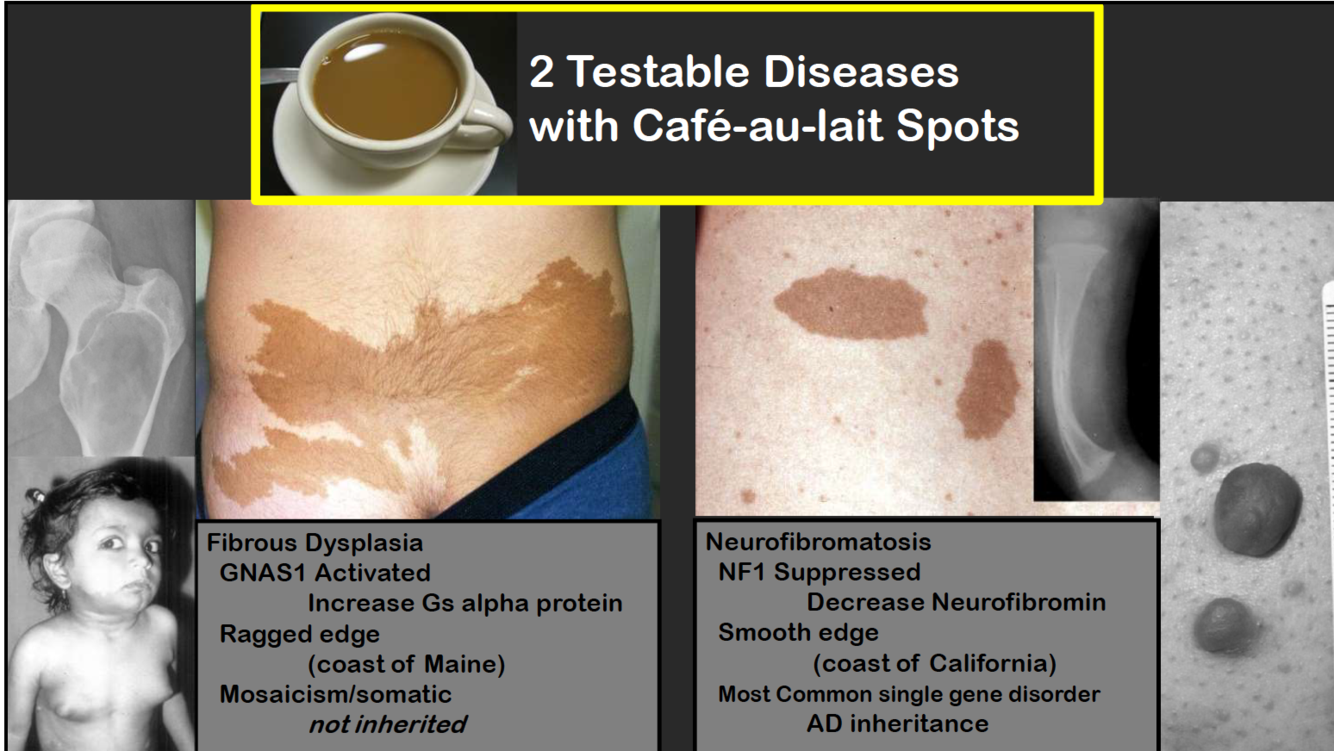 Describe the difference between the two types of diseases with cafe-au-lait spots?