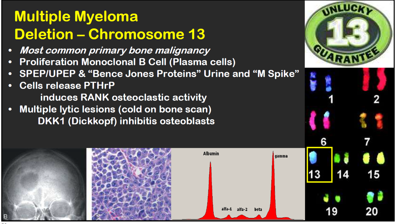 what is unlucky thirteen and its relationship to multiple myeloma?