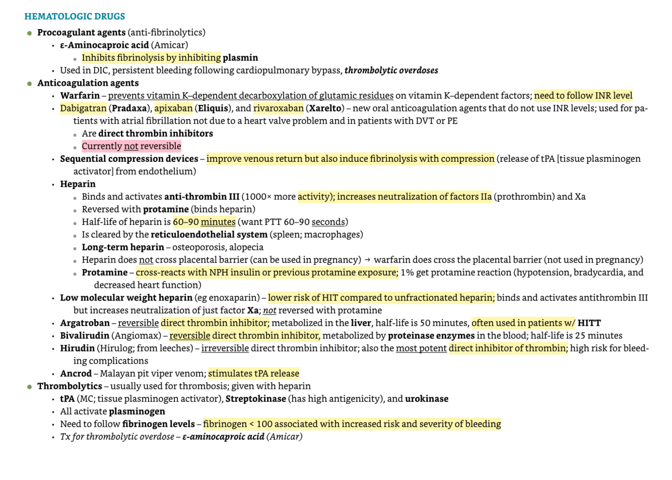 What are the procoagulant - anticoagulant - thrombolytic agents?