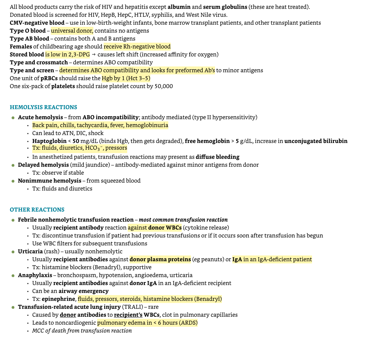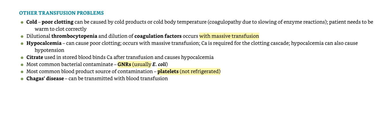 What are the hemolysis reactions and other transfusion problems?
