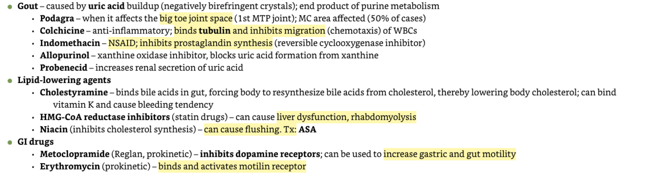 How do you manage gout, lipid lowering drugs, GI drugs?