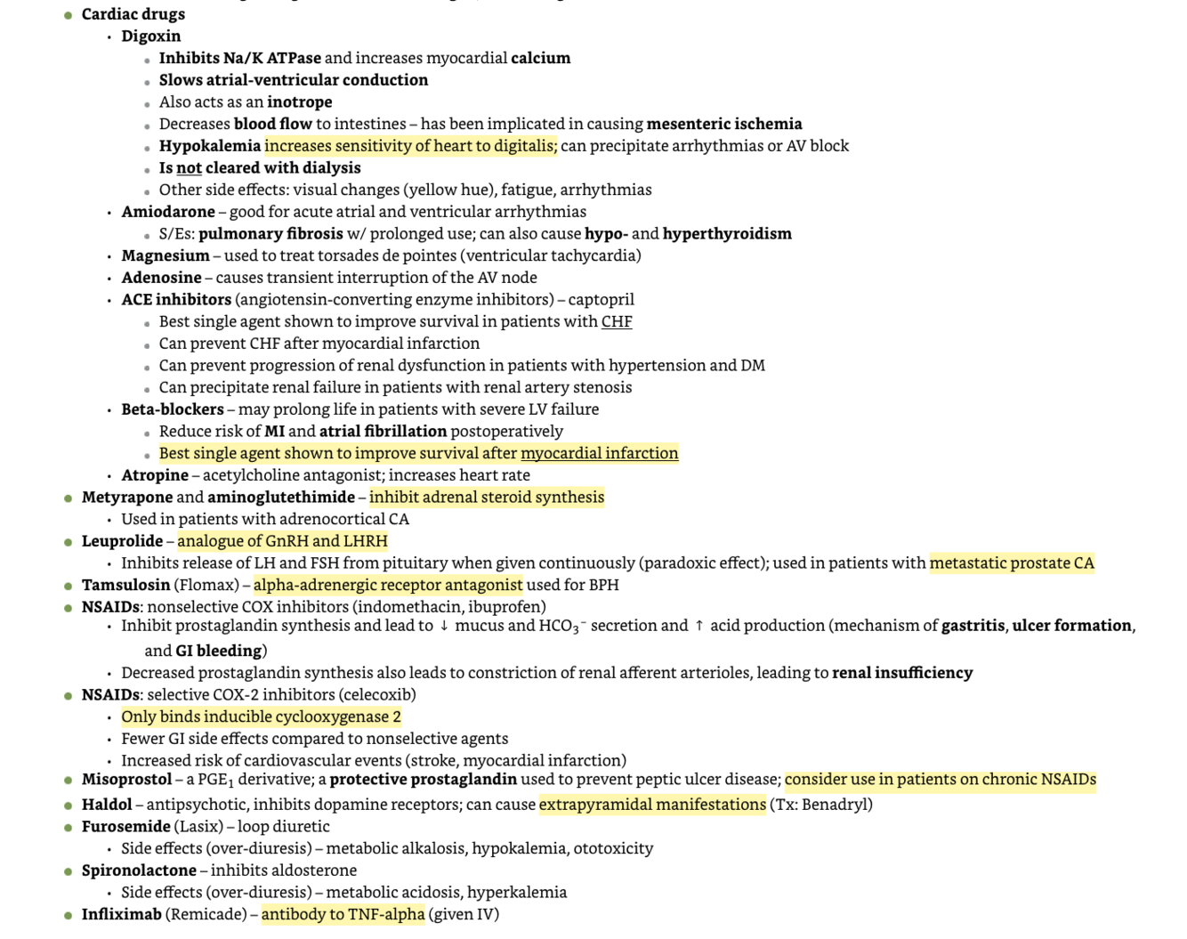 How about cardiac drugs, metyrapone/aminogluthimide/Leuprolide/Tamsulosin/NSAID/ Misoprostol/Haldol/Furosemide/Spironolactone/Infliximab/