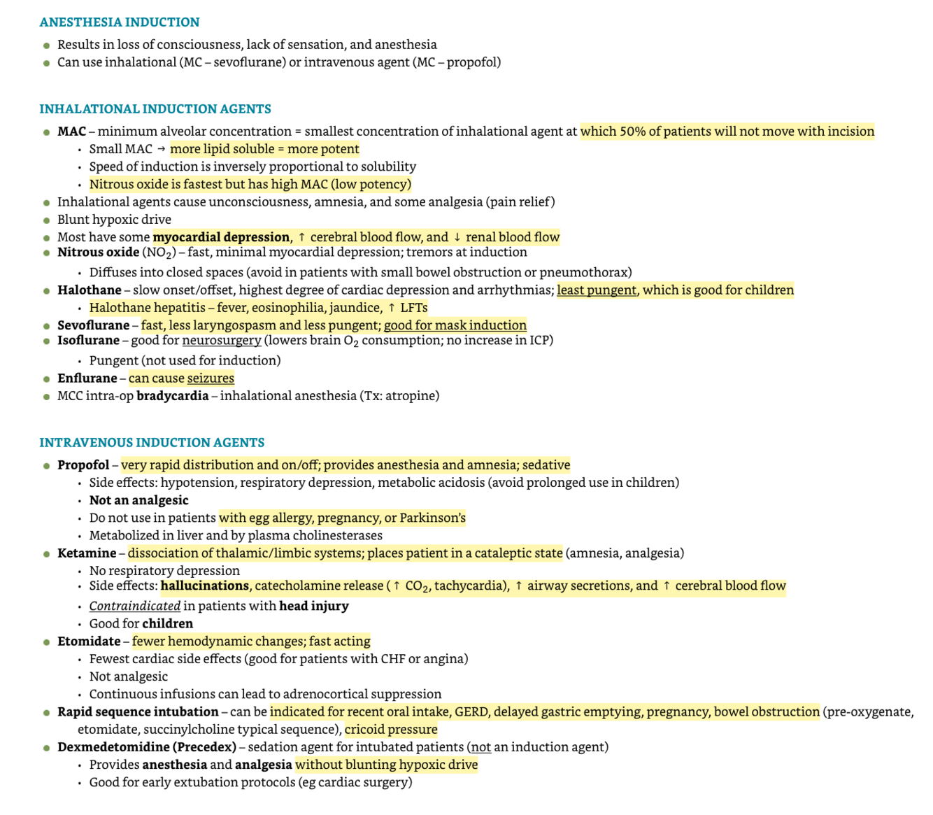 What are the inhalational und iv induction agents?
