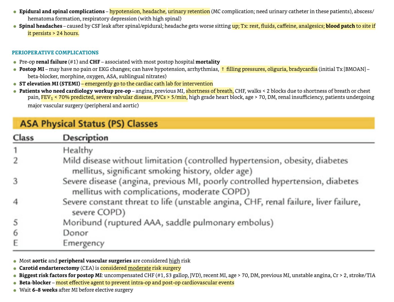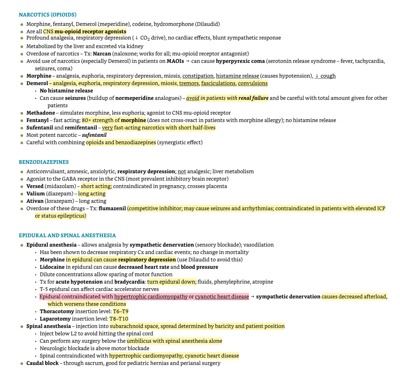 How about Narcotics, Benzos, Epidurals and perioperative complications?