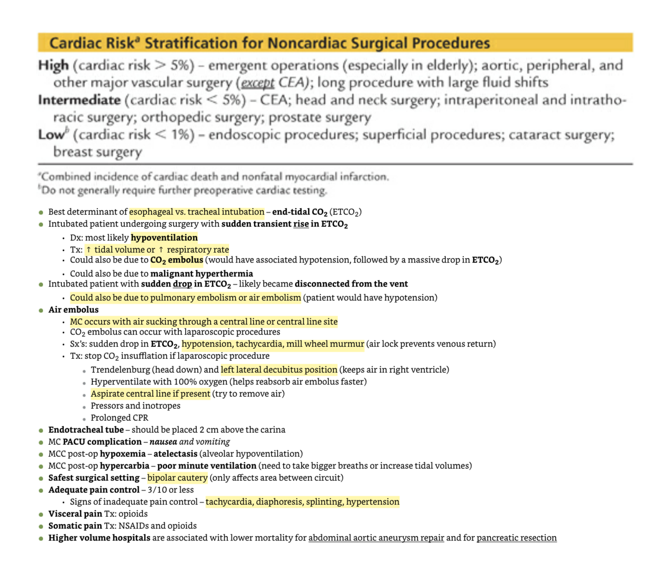 Cardiac risk stratification for noncardiac surgical procedures? Air embolus/CO2 embolus?