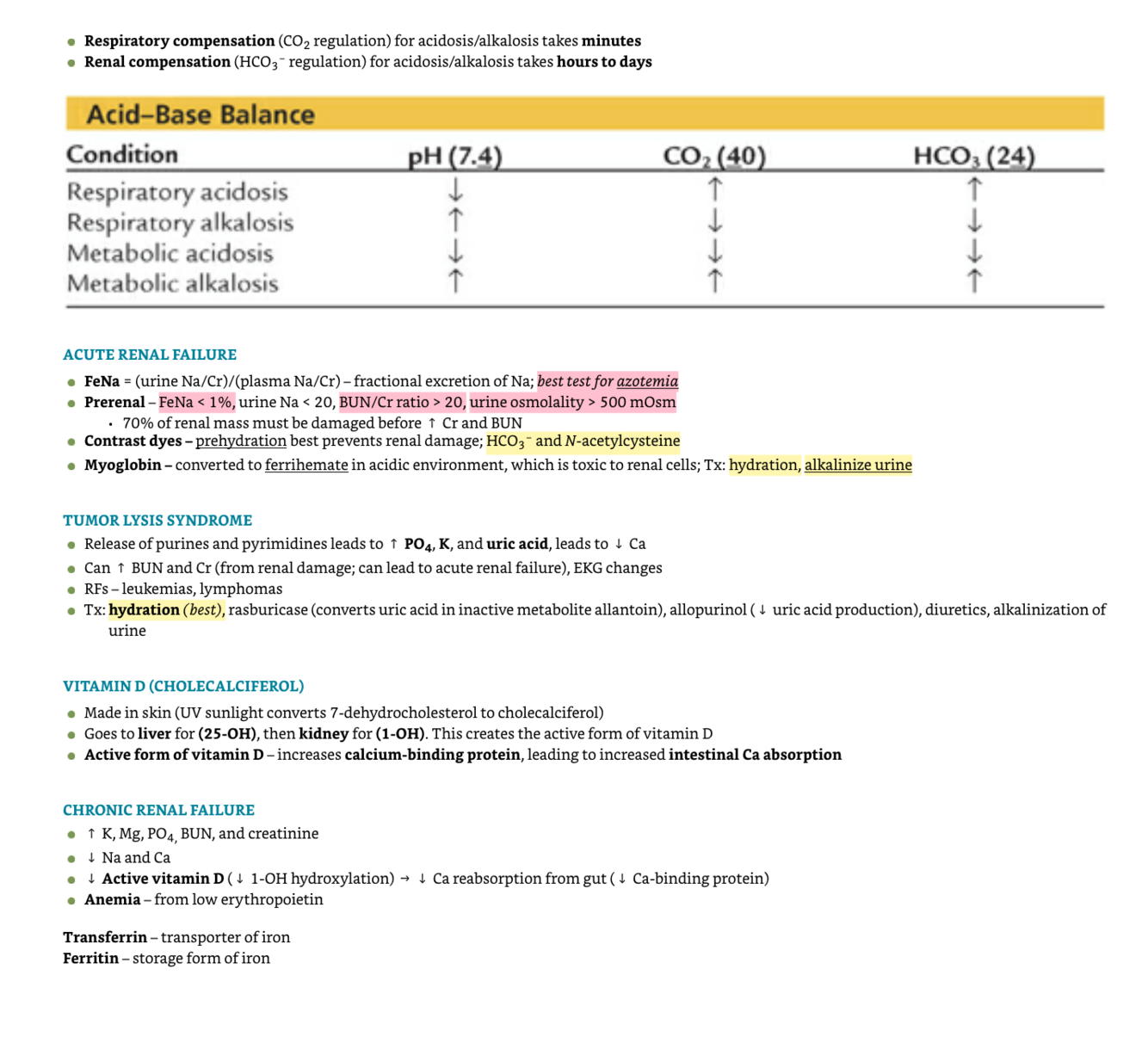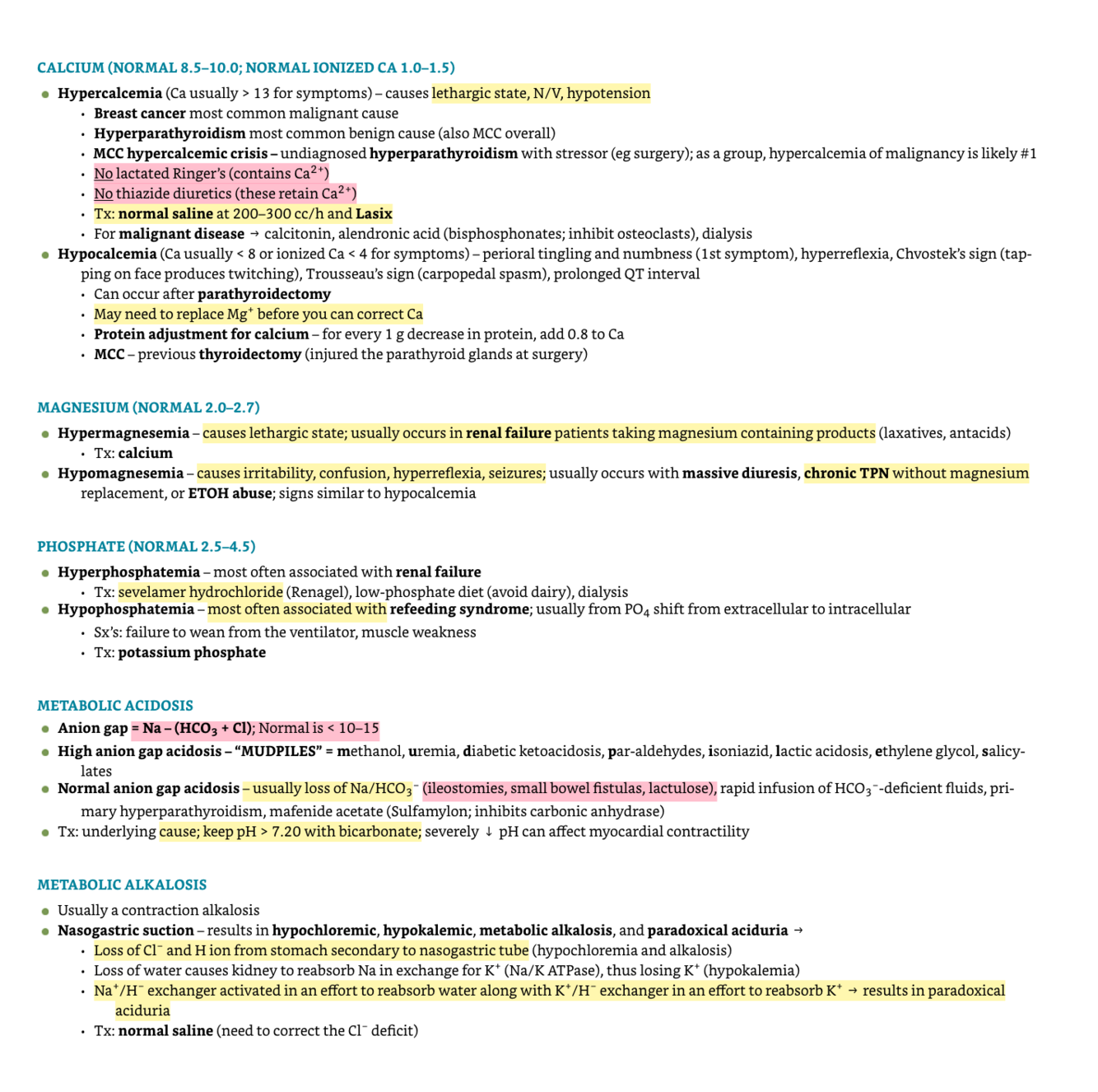 Calcium - Magnesium - Phosphate - Metabolic acidosis - Metabolic alkalosis - Acute renal failure - Vitamin D - Chronic renal failure