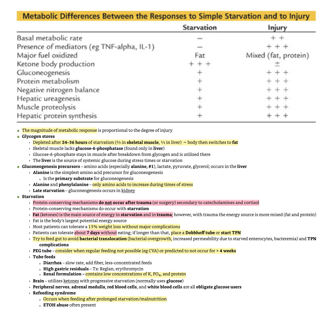 Glycogen stores? Gluconeogensis precursos? Starvation? PEG Tube, ube feeds?
